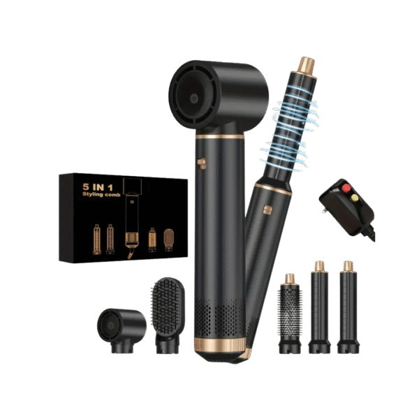 Transform your hair routine with this 5-in-1 hair styler, a multi-function tool that combines a blow dryer brush, curling wand, straightener, volumizing brush, and auto wrap curler—all while minimizing heat damage. With smart air control and negative ion technology, it delivers damage-free styling and reduces frizz and static. Whether you want sleek straight hair, bouncy waves, or air-dried volume, this hot air styler has you covered. Lightweight and easy to use, it’s ideal for home styling, travel, or gift use.