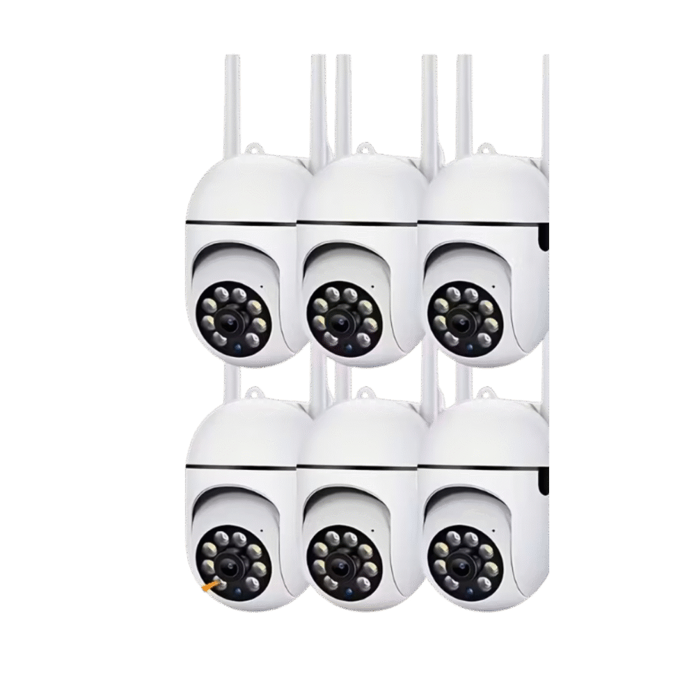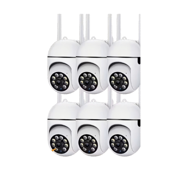 Secure your home or business with this complete 6-pack set of 1080p rotatable wireless security cameras, offering wide coverage and dependable performance in a round, compact form. Each camera rotates up to 355° horizontally, delivering panoramic views without blind spots. The Full HD (1080p) resolution captures sharp, clear video day and night.