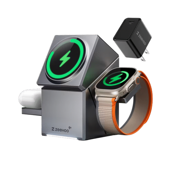 Upgrade your charging station with the CubeTrick X Qi2 15W 3-in-1 Wireless Charging Station, designed to power your iPhone, Apple Watch, and AirPods all at once with style and efficiency. Engineered to support 15W fast wireless charging and compliant with Qi2 protocol, this charger ensures optimal speed and safety for Qi2-enabled devices. It includes a 30W USB-C adapter, giving each device the power it needs without compromise.