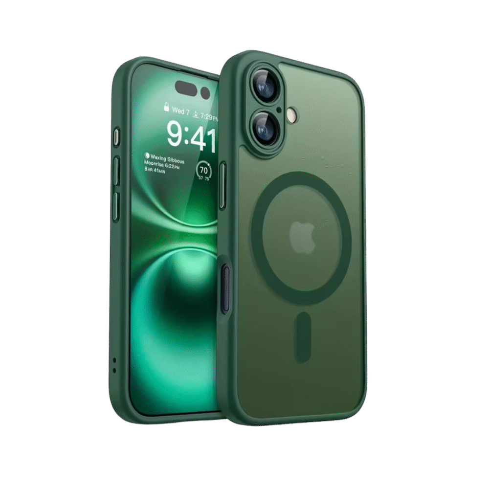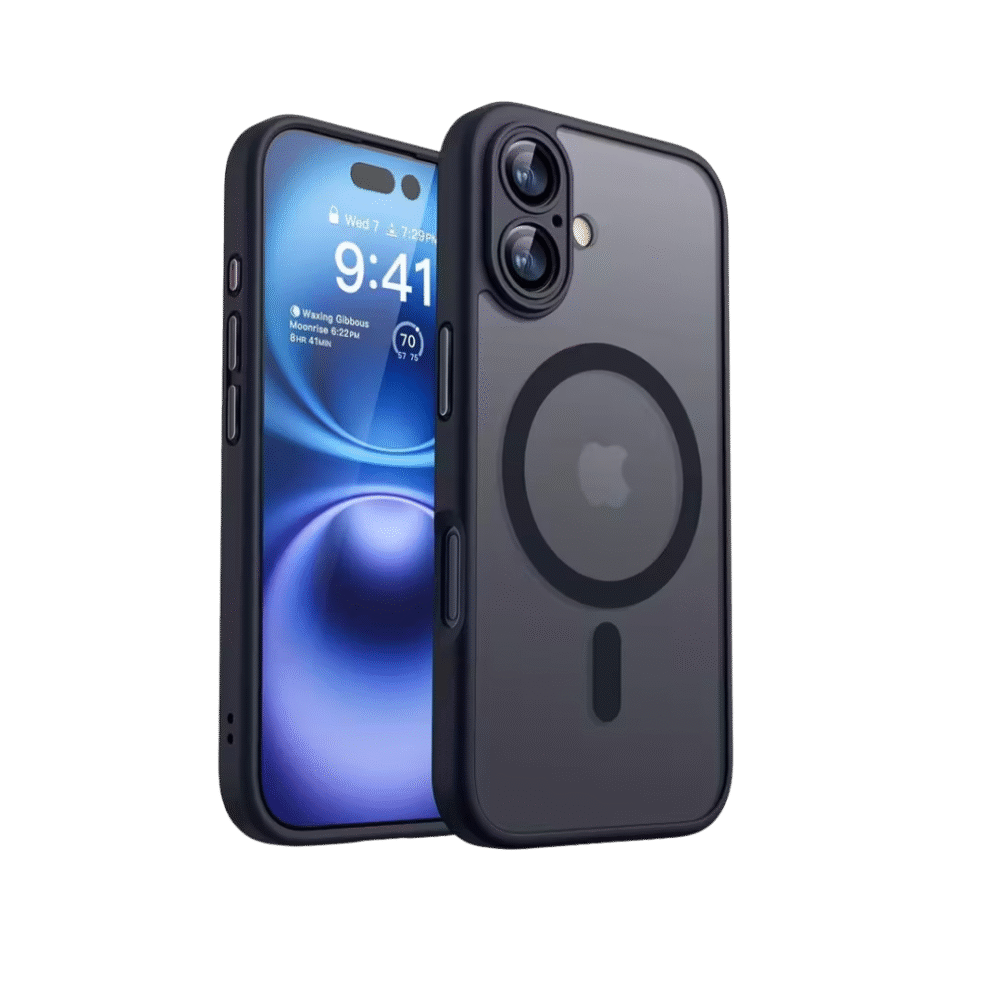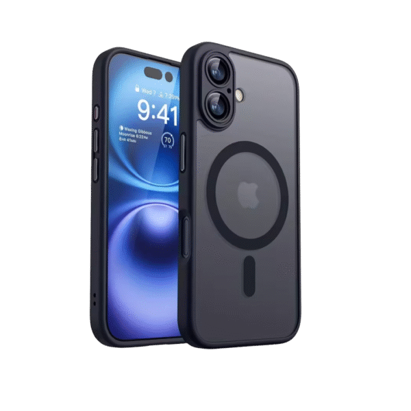 This Premium Magnetic Matte Transparent Protective Case gives your iPhone a sleek, modern look while offering functional protection. The matte finish reduces fingerprints and glare, and the transparent back lets your phone’s design show through. Built-in magnetic alignment enables accessory mounting and secure wireless charging without removing the case. The case supports iPhone models 16, 15, 14, 13, 12, 11, and variants like 16E. With reinforced corners and raised edges, it protects your camera and screen from scratches and bumps. Slim yet durable, this case is ideal for daily use—combining aesthetics, utility, and defense in one package.