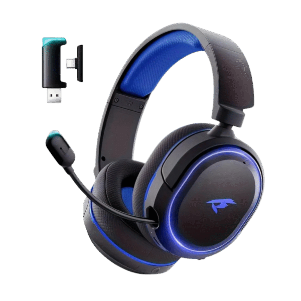 Step into immersive sound with this wireless gaming headset featuring both 2.4 GHz dongle mode and wireless 5.4 for ultra-low latency gameplay. Experience true spatial audio via 7.1 surround sound, while the integrated RGB lighting adds flair to your setup. Boasting up to 100 hours of playtime, this headset is ideal for marathon gaming sessions. The retractable ENC (Environmental Noise Cancelling) mic ensures your voice comes through clearly by filtering ambient noise. Perfect for PC, PS5, or gaming laptops, this wireless headset combines powerful audio, sleek aesthetics, and durability for both casual and competitive gamers.